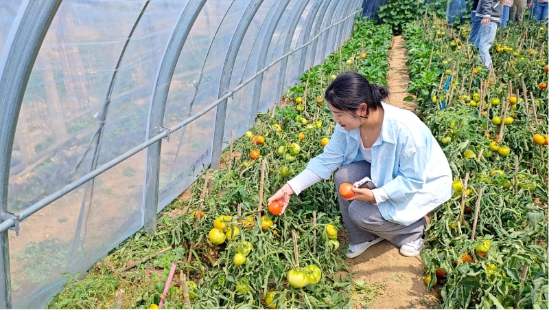 Peale kirge oli mõnus aeg. Kell 10.30 läksime koos Xiazhuangi tomatikorjamisaeda, et alustada intiimset kohtumist loodusega. Juhtus olema selge päev ja päike paistis põldudele. Rohelised oksad ja lehed olid kaetud erkpunase 69 Tomatiga, mis olid ümarad ja lihavad, erksavärvilised, panid inimesed eemalt sülg välja.