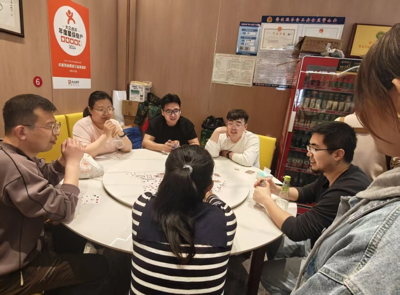 Pärast keskpäevast väikest puhkust, kell 12.30, liikusime hotelli ja alustasime huvitava Guandani võistlusega. Kõigi poolt armastatud meeskonna loomise projektina ei testi Guandan mitte ainult isiklikku loogilist mõtlemist, vaid pöörab rohkem tähelepanu ka partneritevahelisele vaikivale koostööle – "Hea kaart hetkel ei võistle ja partneri vaikiv mõistmine on olulisem kui isiklik kangelaslikkus", mis on täpselt Guandani meeskonna loomise tähendus.